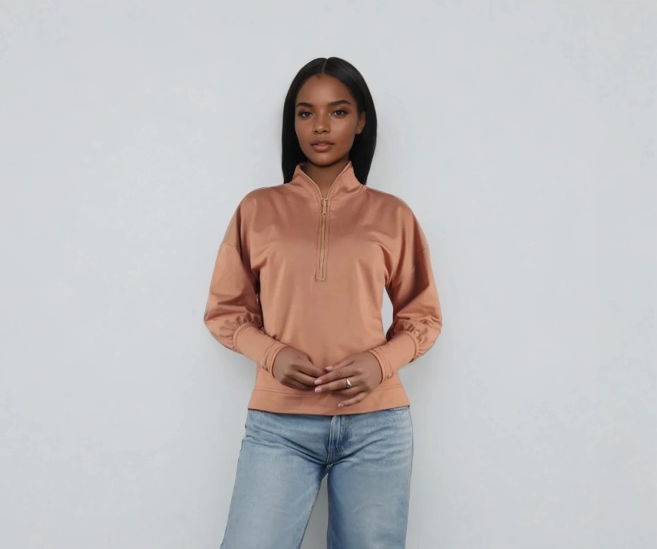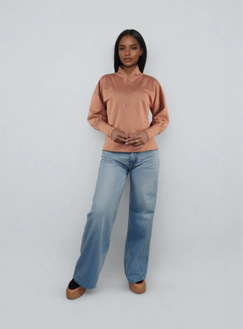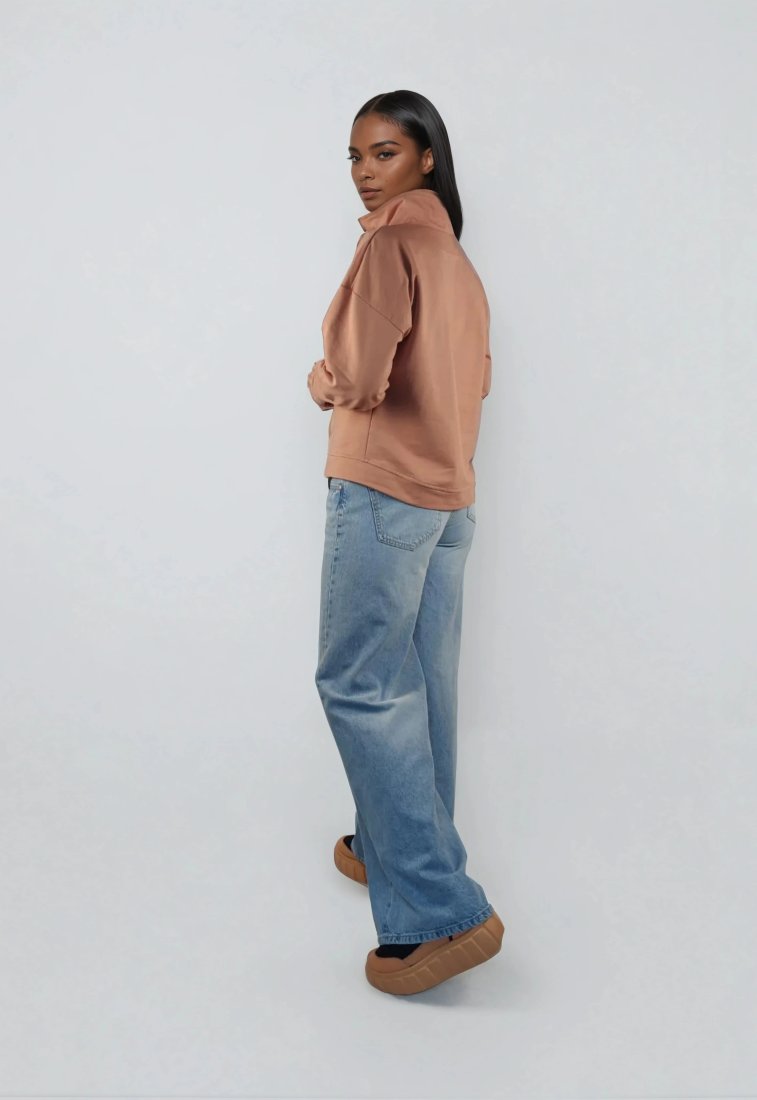 Bluza wkładana przez głowę w kolorze camelowym wykonana z wysokiej jakości bawełny, zapewnia komfort noszenia przez cały dzień.