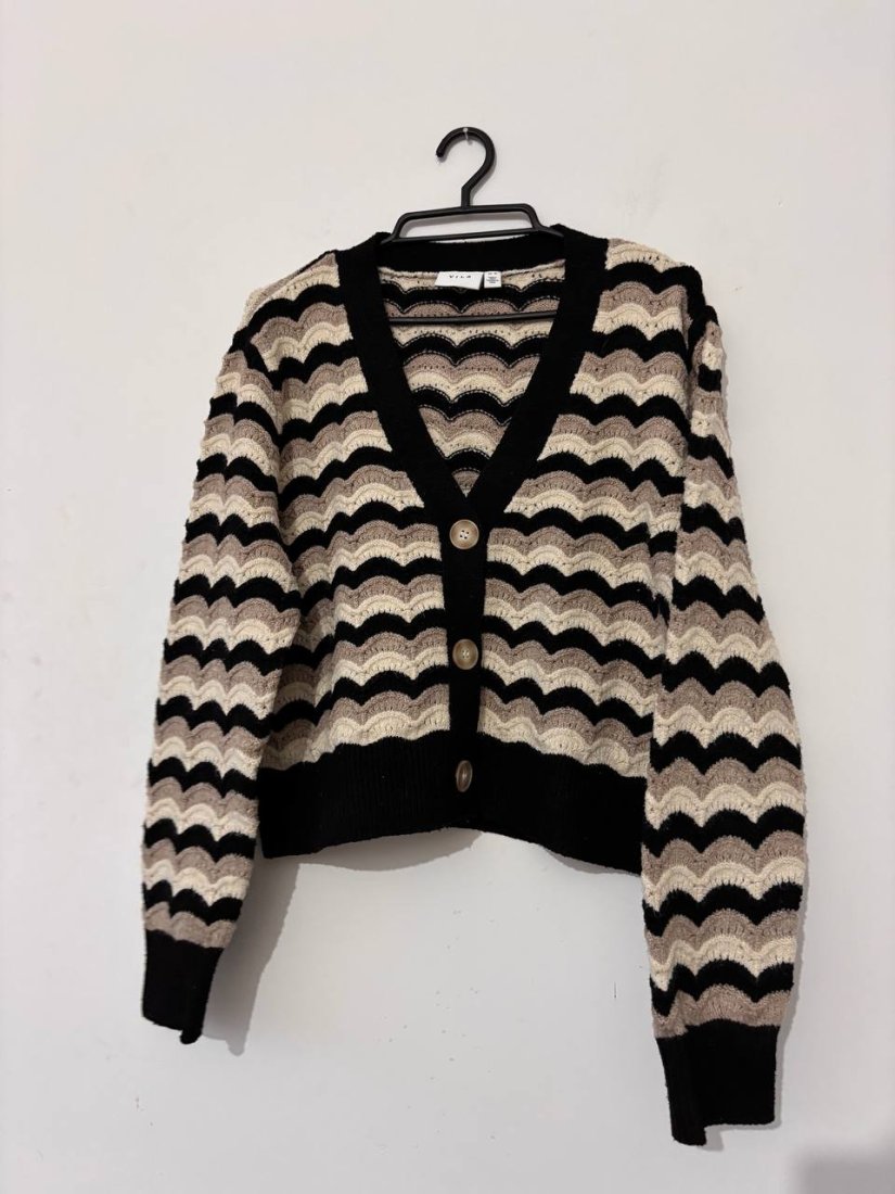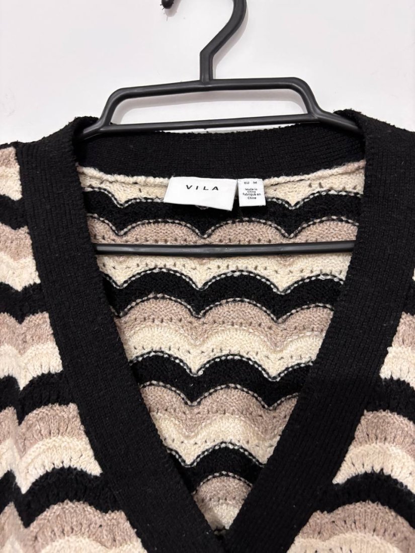 sweter vila, kardigan vila, sweter damski, sweter falowany, sweter beżowy, sweter czarny, modny sweter, sweter na guziki, kardigan na guziki, sweter jesienny, sweter zimowy, scandi style, boho sweter, knitwear, knitted cardigan, v neck cardigan, beige cardigan, black cardigan, wavy pattern sweater, cosy knit, warm sweater, stylish cardigan, vila sweater, vila cardigan, everyday wear, casual cardigan, neutral colours, trendy knit, soft knitwear, comfy sweater, women’s cardigan, elegant knit, fall outfit, winter outfit, cozy cardigan, textured knit, boho knit, retro cardigan, classic cardigan, minimal style