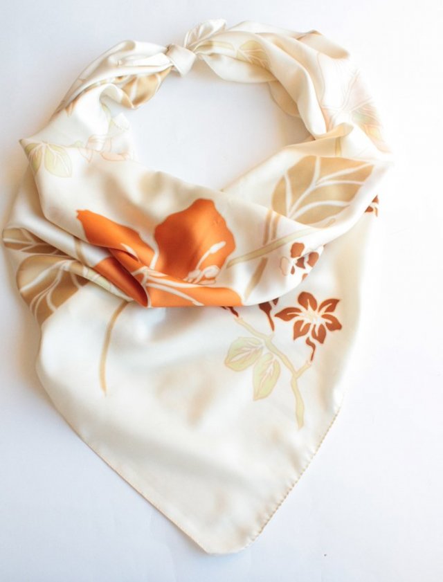 Duża chusta w kwiatowe motywy w stylu retro. Miejscami ślady na materiale widoczne na zdjęciu, stąd niska cena. Nie utrudnia to użytkowania ani nie jest widoczne przy standardowym użytkowaniu.