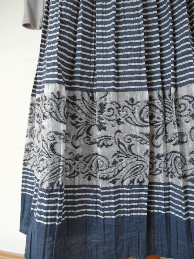 Na szerokim elastycznym pasie, lekko jakby naturalnie plisowana, na podszewce.Jest cienka i bardziej sztywna niż zwiewna.