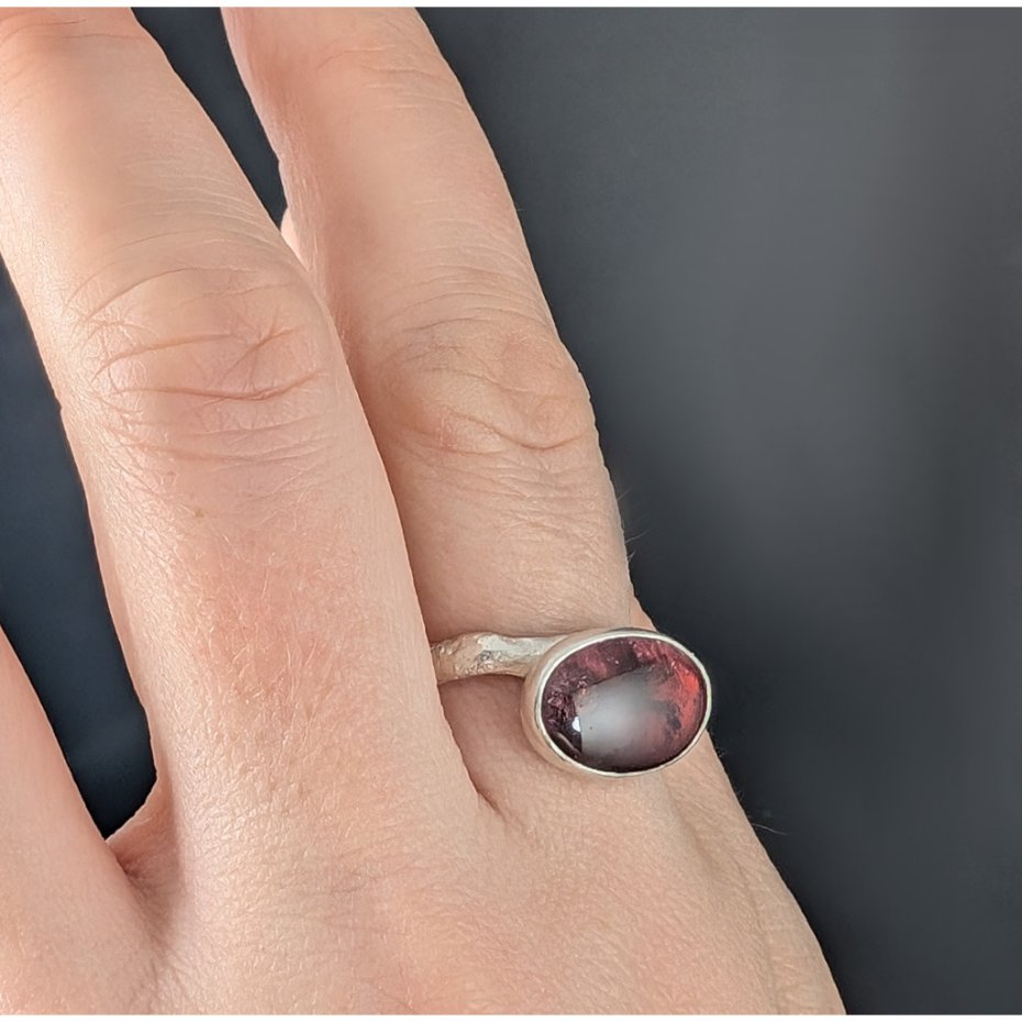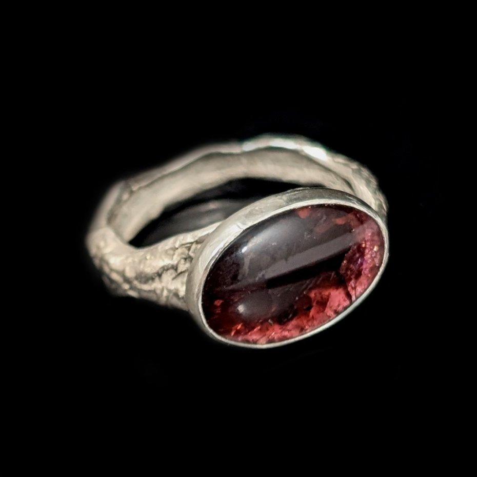 Delikatny, uroczy pierścionek wykonany ze srebra próby 925 oraz różowego turmalinu. Kamień w oprawie 14 x 10 mm.Waga 5 g. Dziewczęcy, subtelny, klasyczny. Rozmiar jubilerski regulowany, dopasuję na konkretny. Pierścionek zostanie zapakowany w ozdobne pudełeczko.