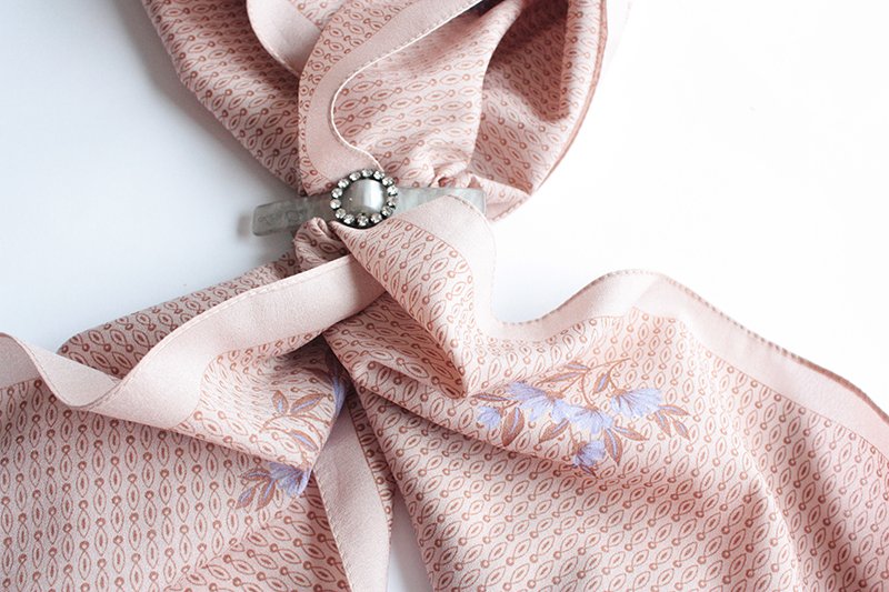 Subtelny szal w kwiatowe wzory. Spinka widoczna na zdjęciu dostępna w mojej galerii.