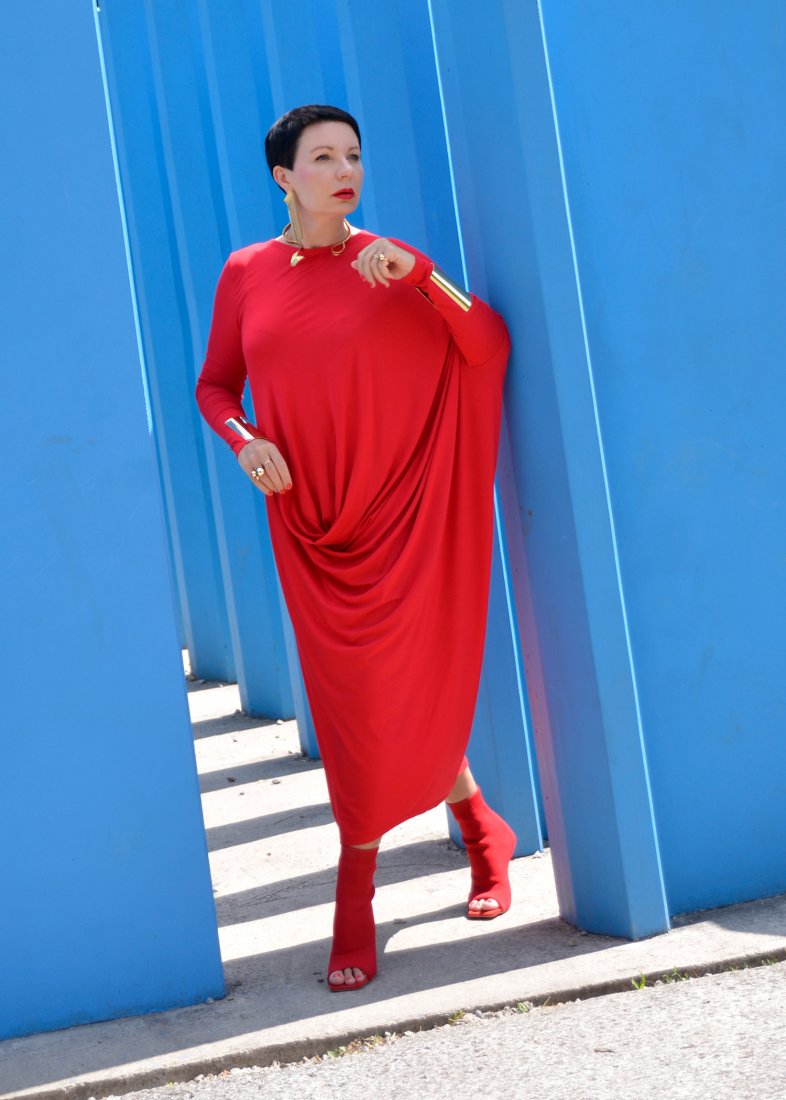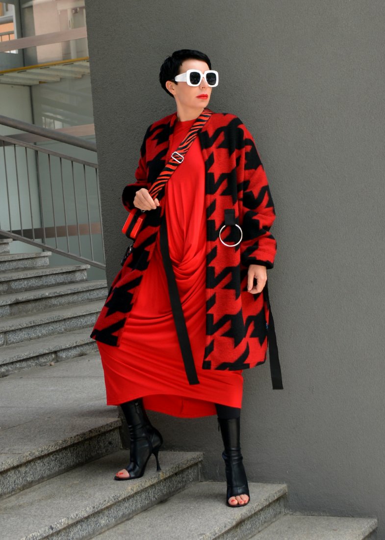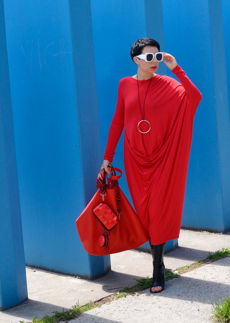 o efektownym asymetryczny kształcie charakterystycznym dla ubrań od momo