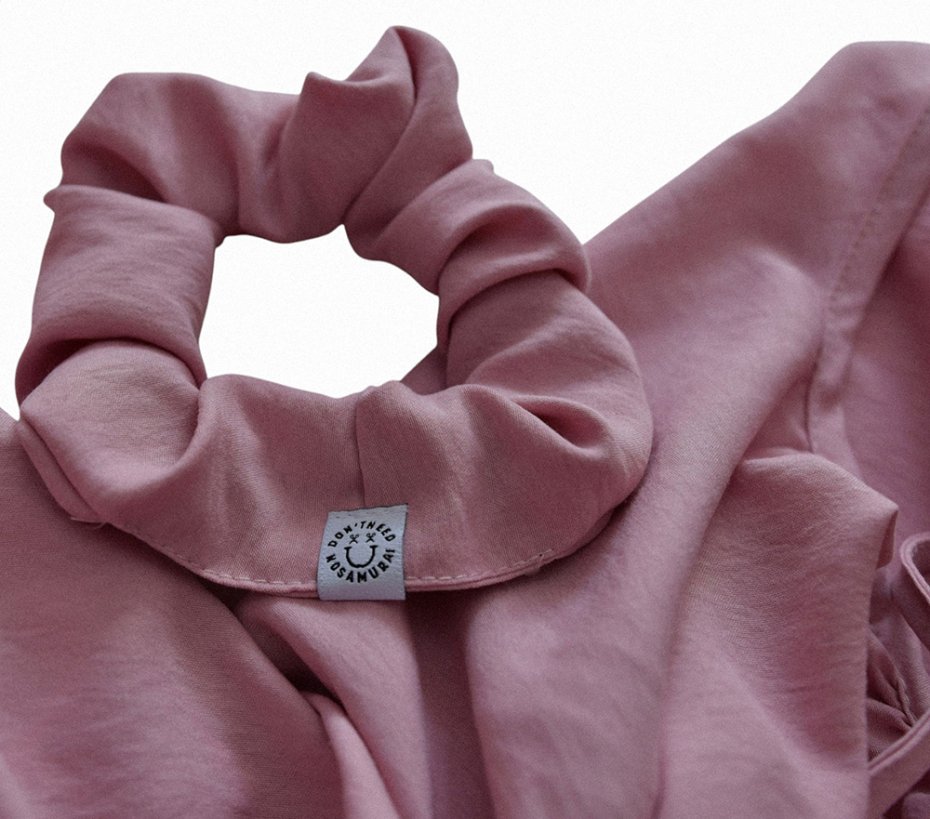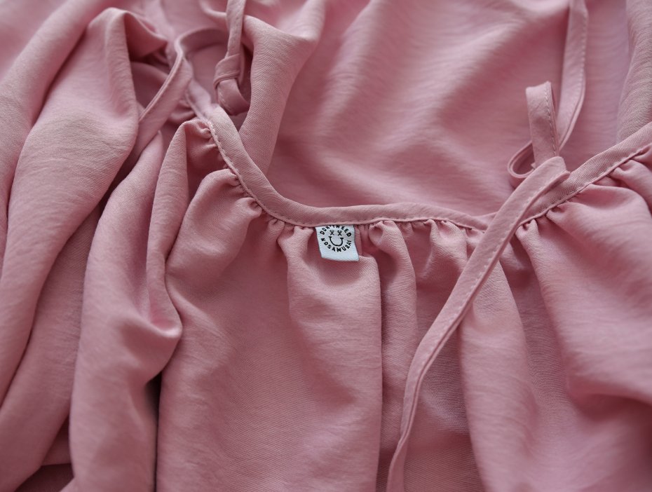 Dół z dziewczęcą falbaną, mini wszywka z uśmiechem DNNS na plecach.