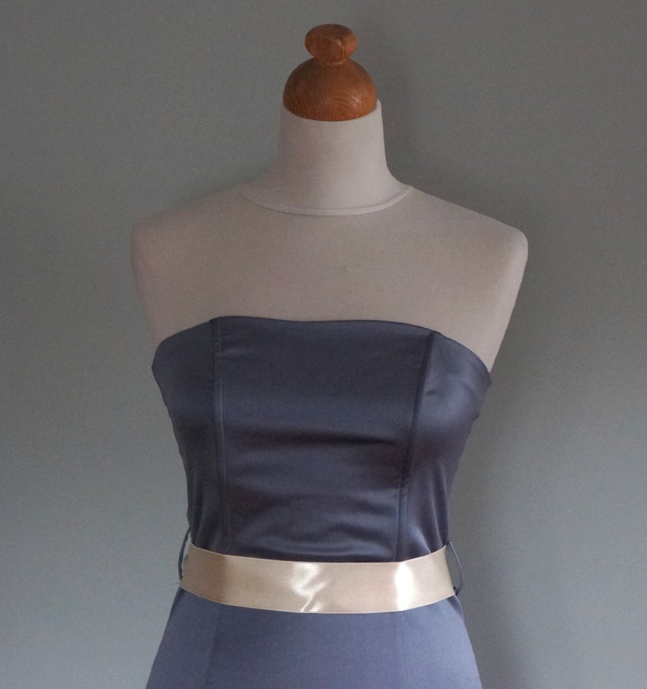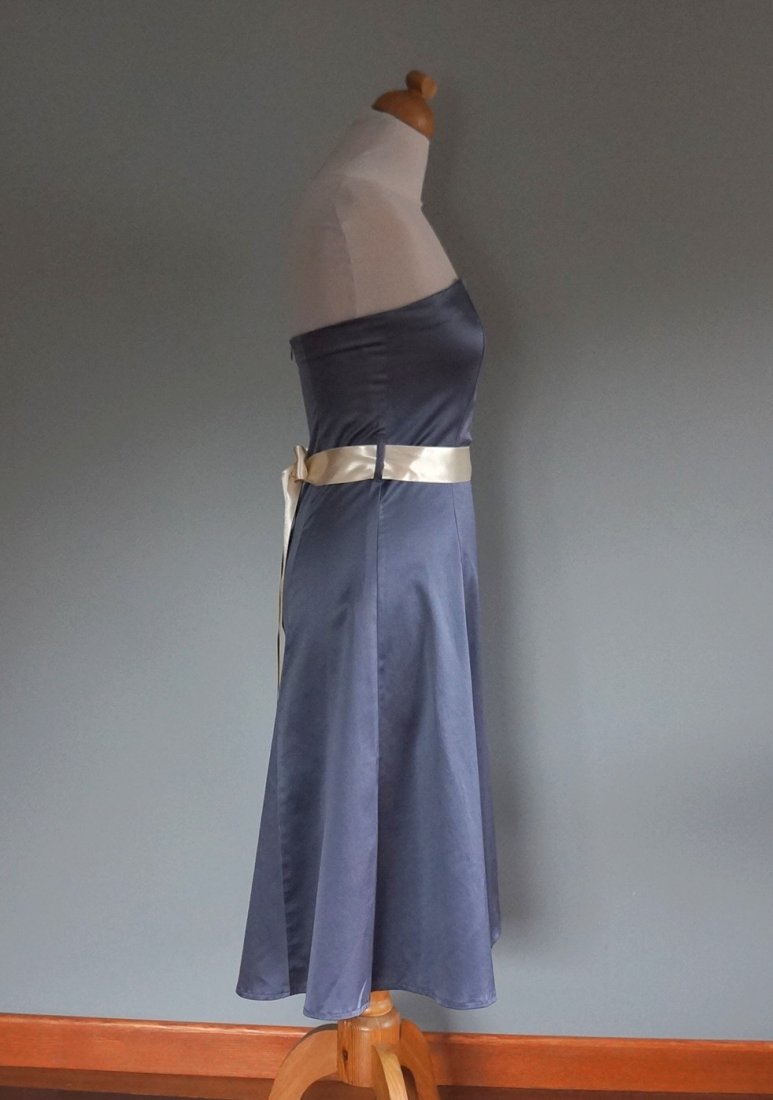 Sukienka firmy Atmosphere. Bez ramiączek. Biust wyprofilowany i usztywniony. Kolor grafitowy/ciemno-szary