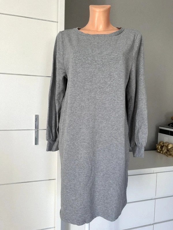 Sukienka dresowa z bawełny firmy Ellos, rozmiar z metki XL/XXL 42/ 44. Sportowa elegancja Ładny szeroki dekolt, mankiety przy szerszych rękawach. Idealna do butów sportowych jak i eleganckich. Wygodna z elastanem. Polecam