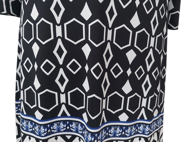 Lejąca, efektowna sukienka w geometryczne wzory. Na co dzień i na wyjścia.