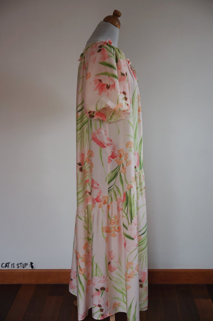 Długa sukienka marki H&M. Rękawy bufki. Tkanina 80% wiskoza, 20%poliamid. Stan bardzo dobry.