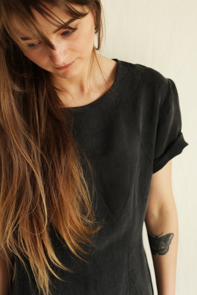 Delikatna sukienka o prostym fasonie. 100% jedwab.