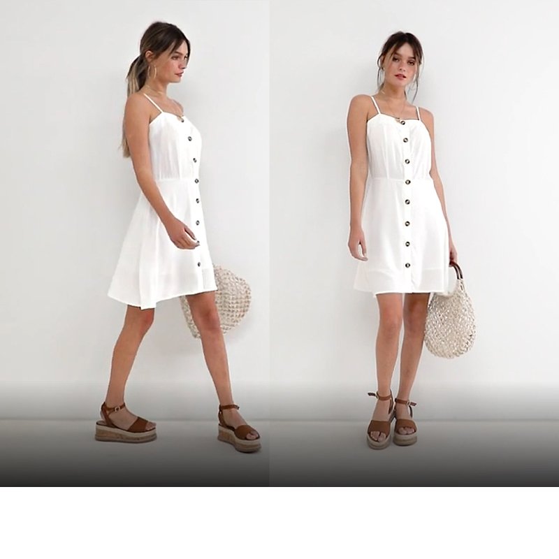 Letnia sukienka z przyjemnej, lejącej tkaniny wiskozowej, na cienkich ramiączkach, zapinana na guziki, dół lekko rozszerzany, na podszewce.