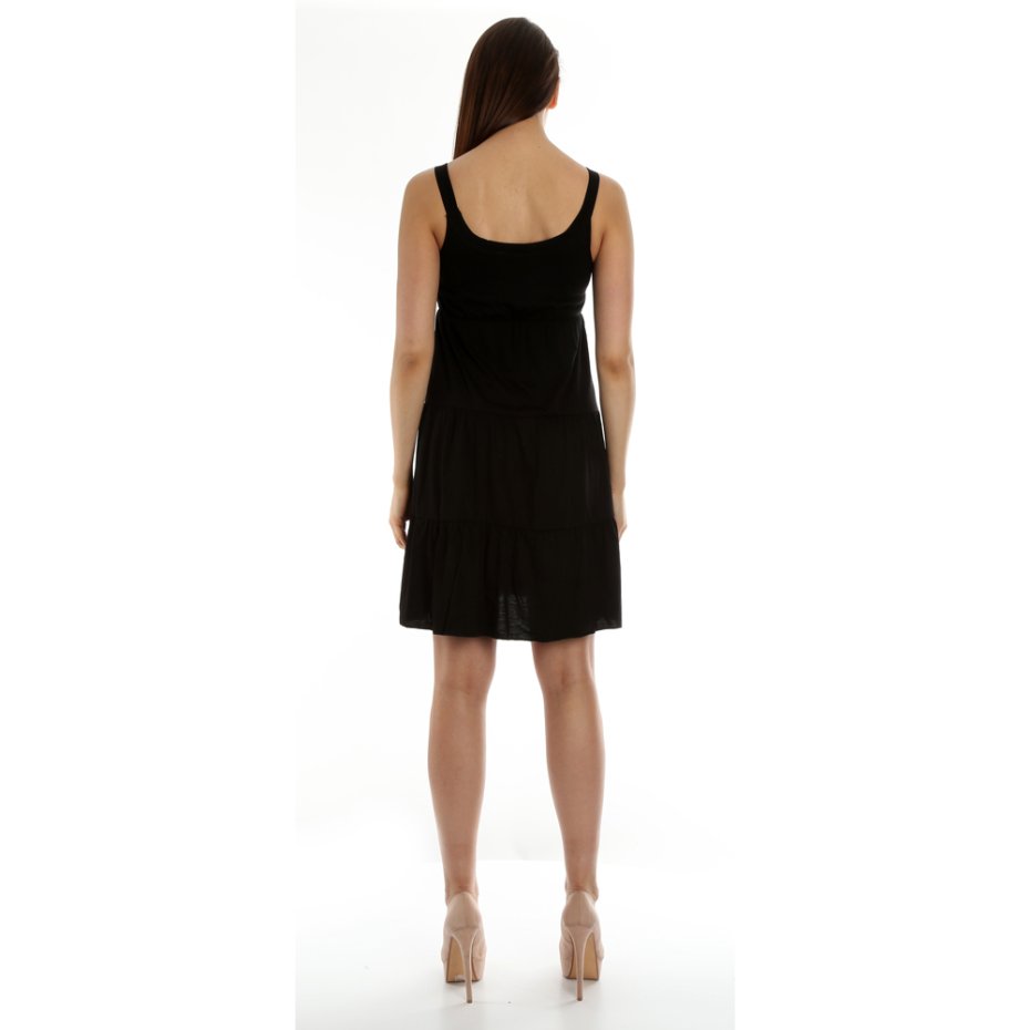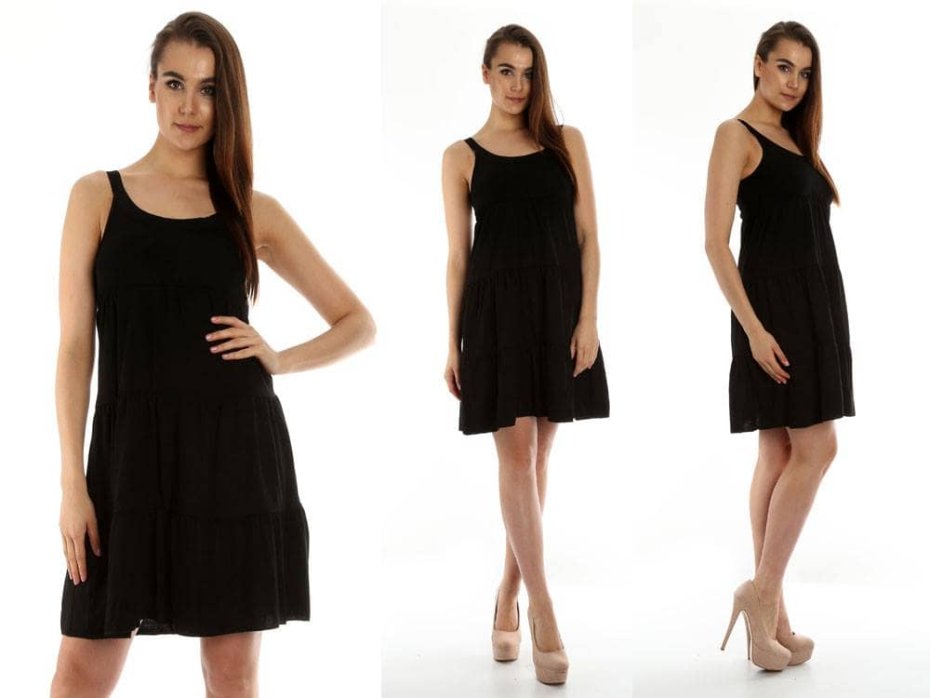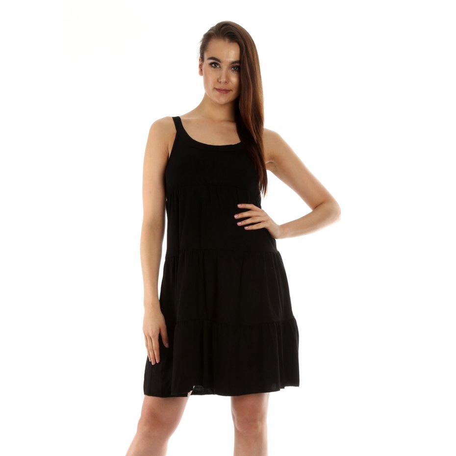 Letnia sukienka wykonana z lejącej się lekkiej tkaniny typu jersey. Krój w kształcie litery A rozszerzany ku dołowi. Grubsze stabilne ramiączka. Szyta z kilku namarszczanych falban. Idealna na wiosnę , lato.