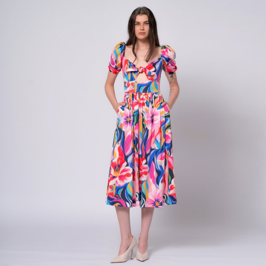 Sukienka "Ola" wykonana z autorskiego jersey'u w ręcznie malowany wzór "Bloom"