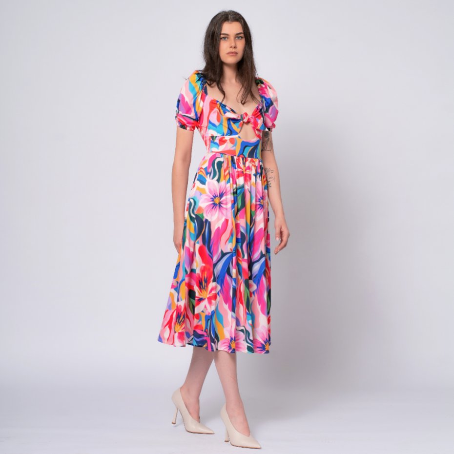 Łączy kobiecą formę z wyrazistym, graficznym printem – idealna zarówno na co dzień, jak i na specjalne okazje.