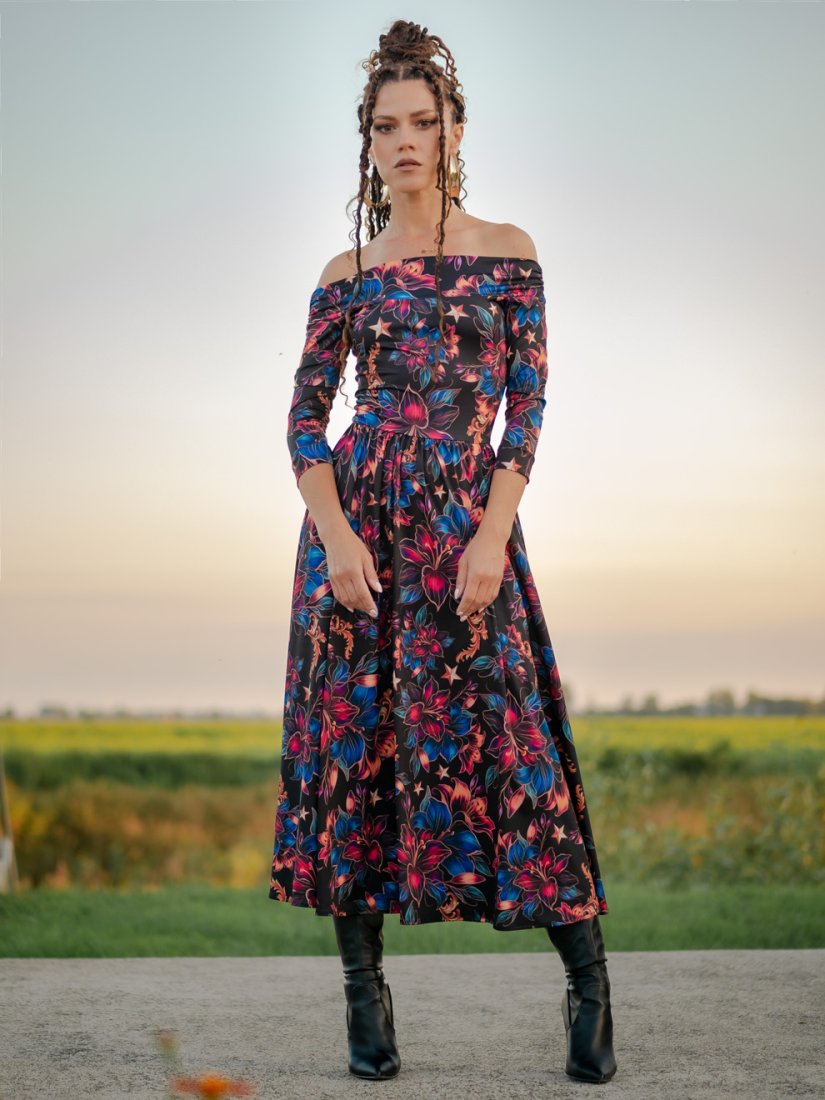 Stylizacja: Ponadczasowy krój sukienki pozwala na dowolność stylizacji i łatwość w dopasowaniu do okazji. Możesz nosić ją z eleganckimi butami i żakietem do pracy czy na wesele; z balerinami i sweterkiem, kozakami, botkami, płaszczem - na co dzień; ze sportowymi butami i jeansową kurtką. Wszystko zależy od Ciebie i Twojego stylu życia. Jeśli lubisz podkreślać talię - załóż pasek.