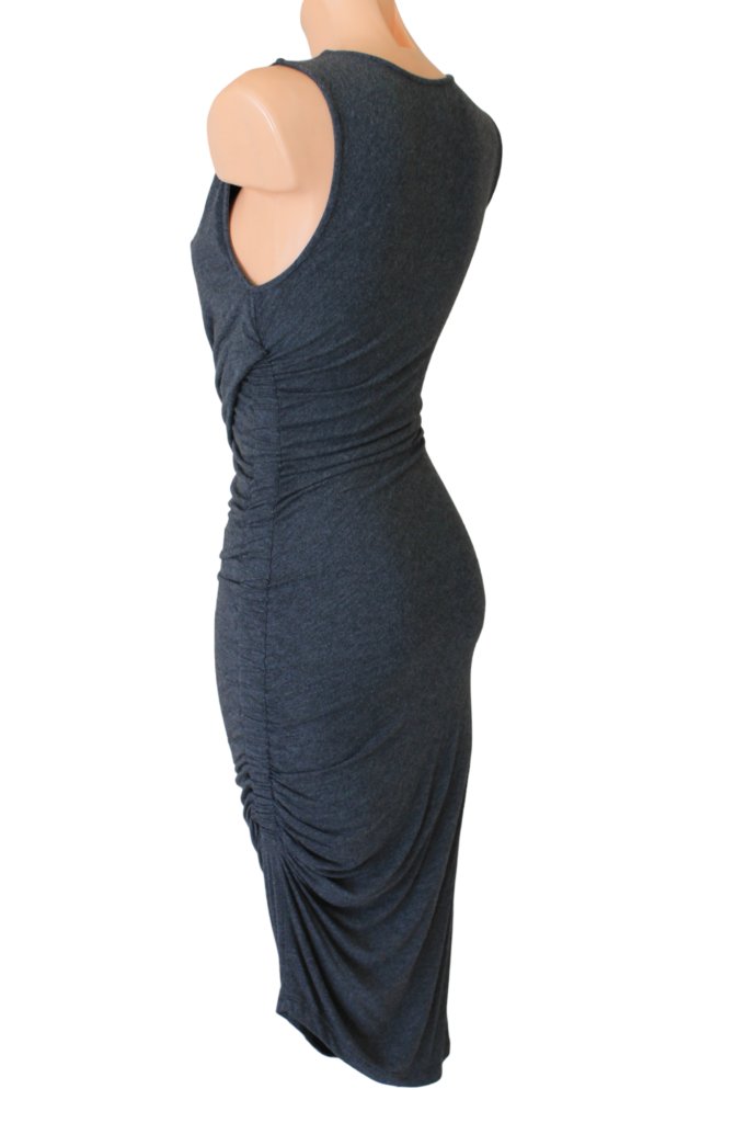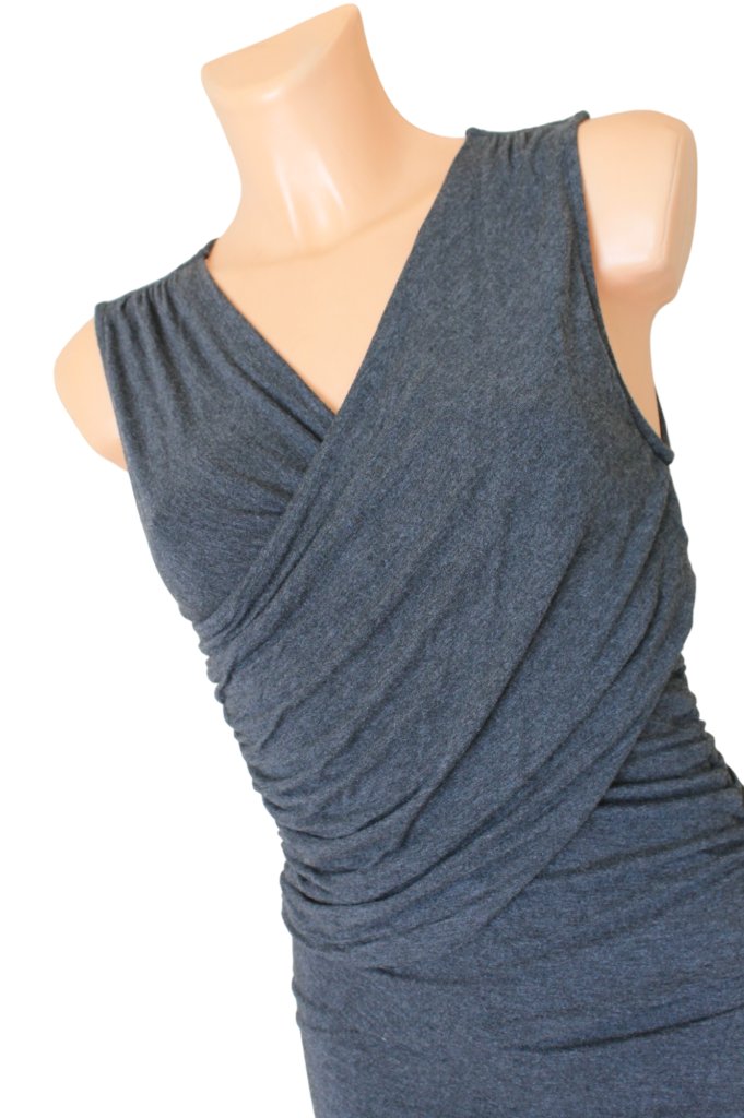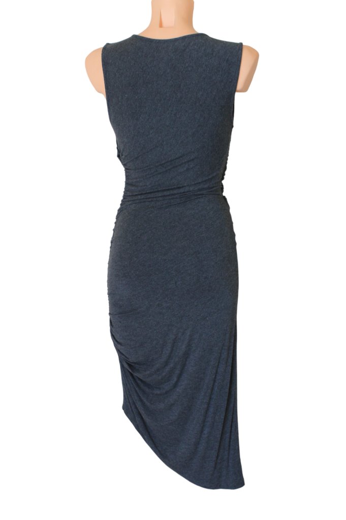 Sukienka marki Moulinette Soeurs, rozmiar z metki to XS 34. Sukienka jest bardzo obcisła, idealnie podkreśla sylwetkę i dolega do ciała. Ma piękny ciemnoszary kolor. Jest asymetryczna, na grubych ramiączkach. Wykonana z rayonu.