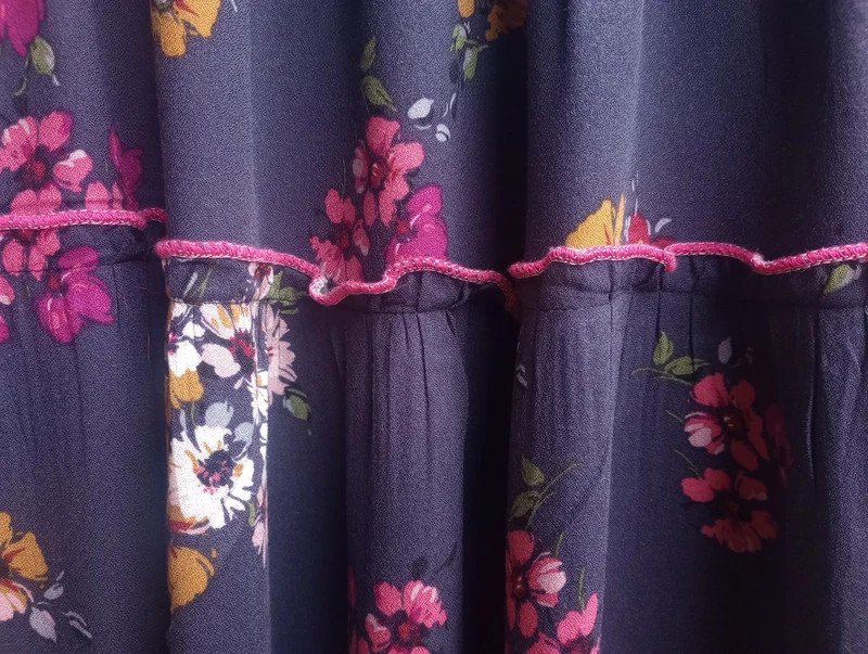 Skład: Brak metki ze składem, ale jest to albo wiskoza 100%, albo wiskoza z domieszką jedwabiu.