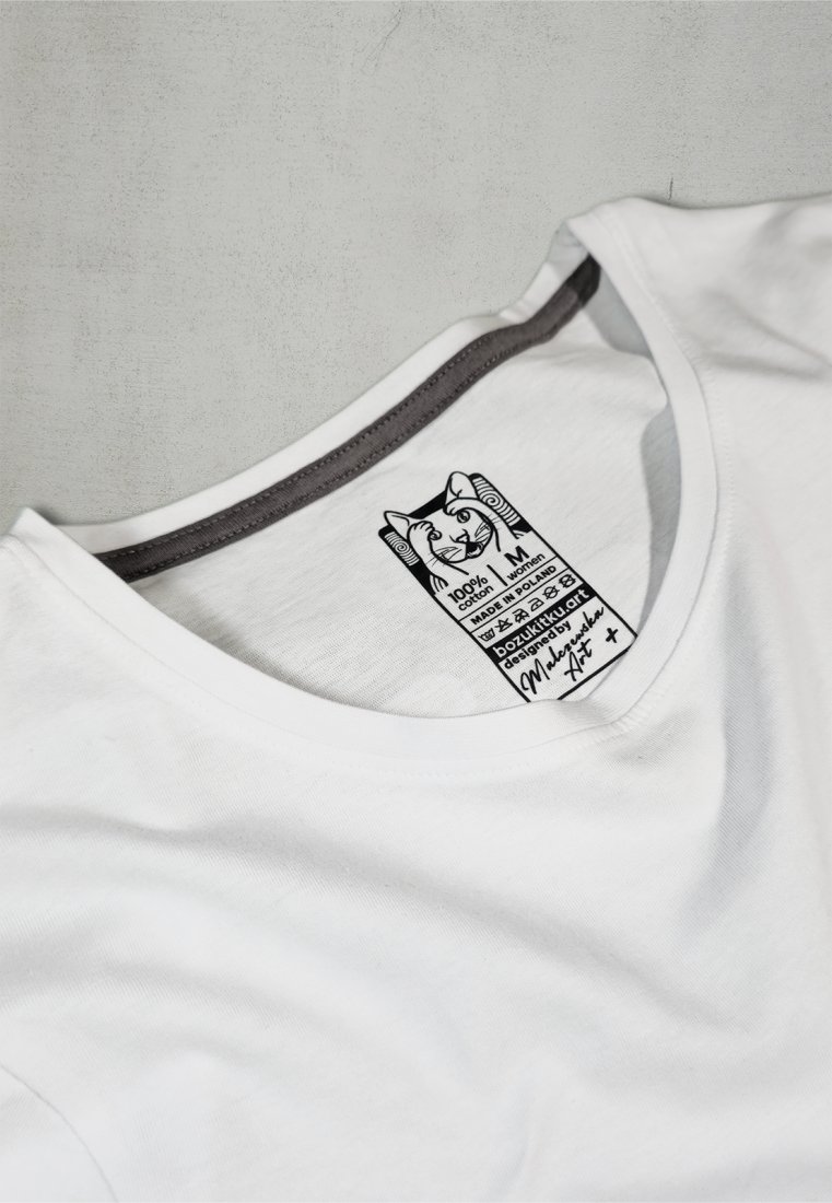 Pielęgnacja: Prać w max. 40°C – gorąca woda to spisek ludzi przeciwko kotom. Nie wybielać – kitku jest dumny z naturalnego futerka. Prasować na lewej stronie, w średniej temperaturze – kot nie toleruje przypaleń, Ty też nie powinieneś. . Nie suszyć w suszarce – Twój kot tam śpi.