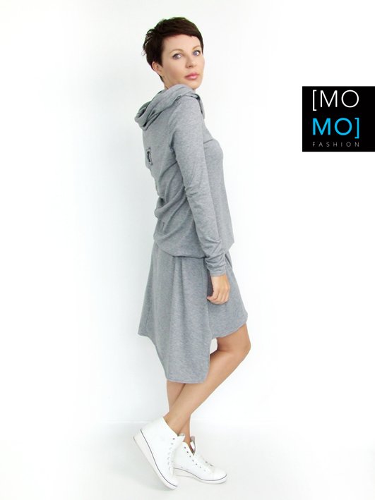 Tagi: #kaptur, #sukienka z dzianiny, #szary melanz, #tunika dresowa