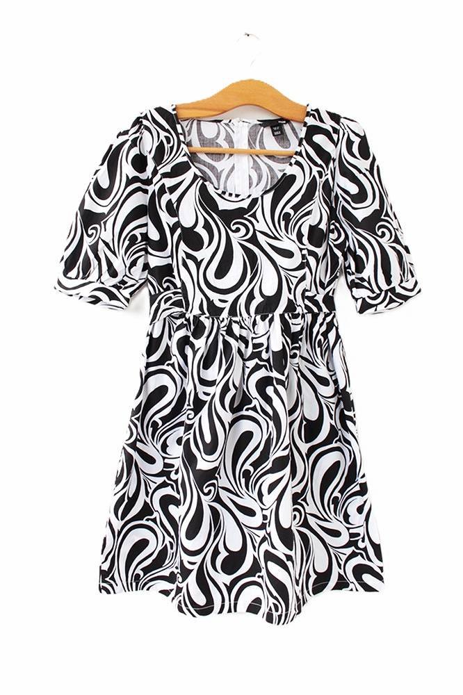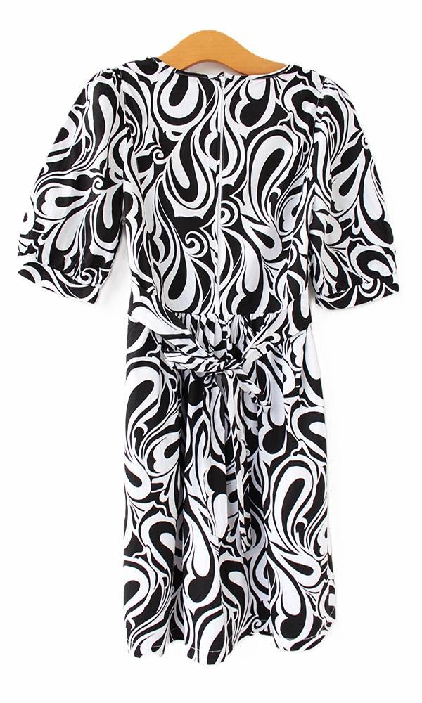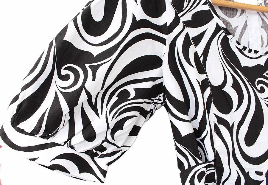 Sukienka vintage z dobrej jakościowo bawełny. Sukienka jest rozszerzana ku dołowi. Talię można podkreślić wiązanym paskiem. Z tyłu zapięcie na suwak.