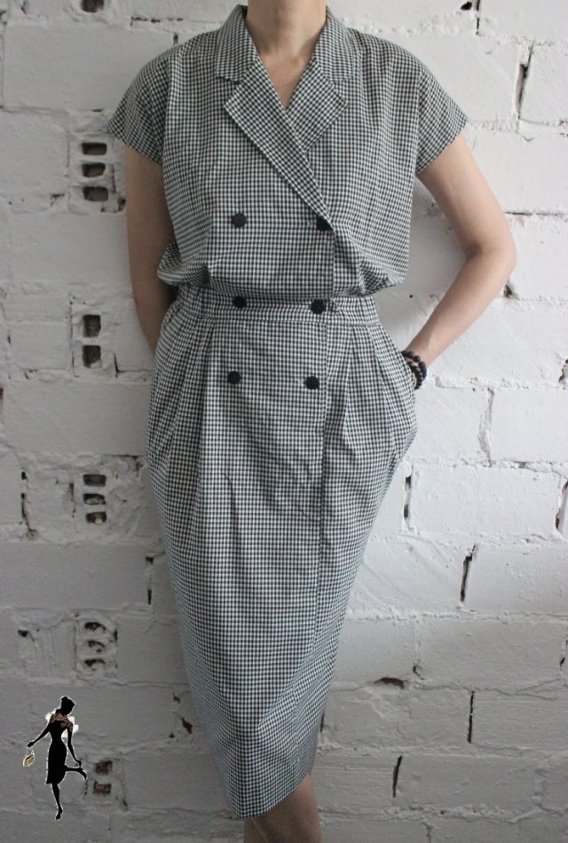 Sukienka w kratkę z kieszeniami. Wymiary: obwód biustu-55cmx2, obwód pasa-39cmx2 (regulowany gumką), obwód bioder-59cmx2, długość sukienki-118cm. Brak metki ze składem materiału.