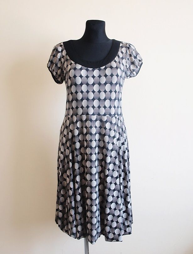 Śliczna sukienka marki Wearhouse, Brak śladów użytkowania. Materiał bardzo miły w dotyku, rozciągliwy, 98% wiskoza, 2% elastan. Sukienka odcięta w pasie, pod spodem od pasa cieniutka siateczka połączona z brzegiem tworzy formę bombki. Rozmiar z metki L, myślę, że powinna pasować na 40. Podaję wymiary mierzone na płasko;