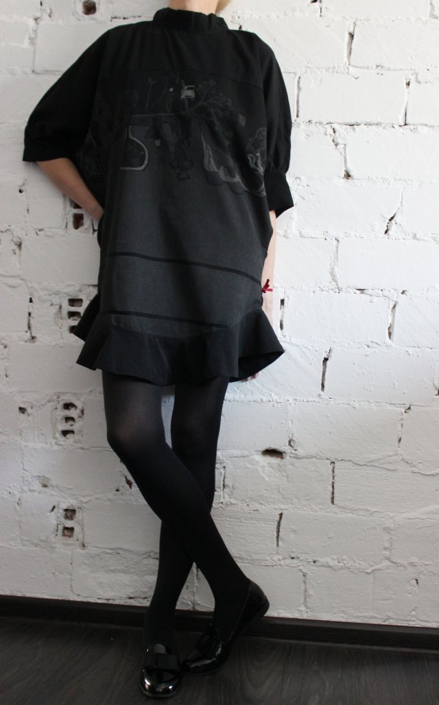 Oryginalna sukienka z falbanką. Firma Peoples Market. Rozmiar 40/L. Wymiary: Wymiary: obwód biustu-90cmx2, obwód bioder-55cmx2, długość-85cm.