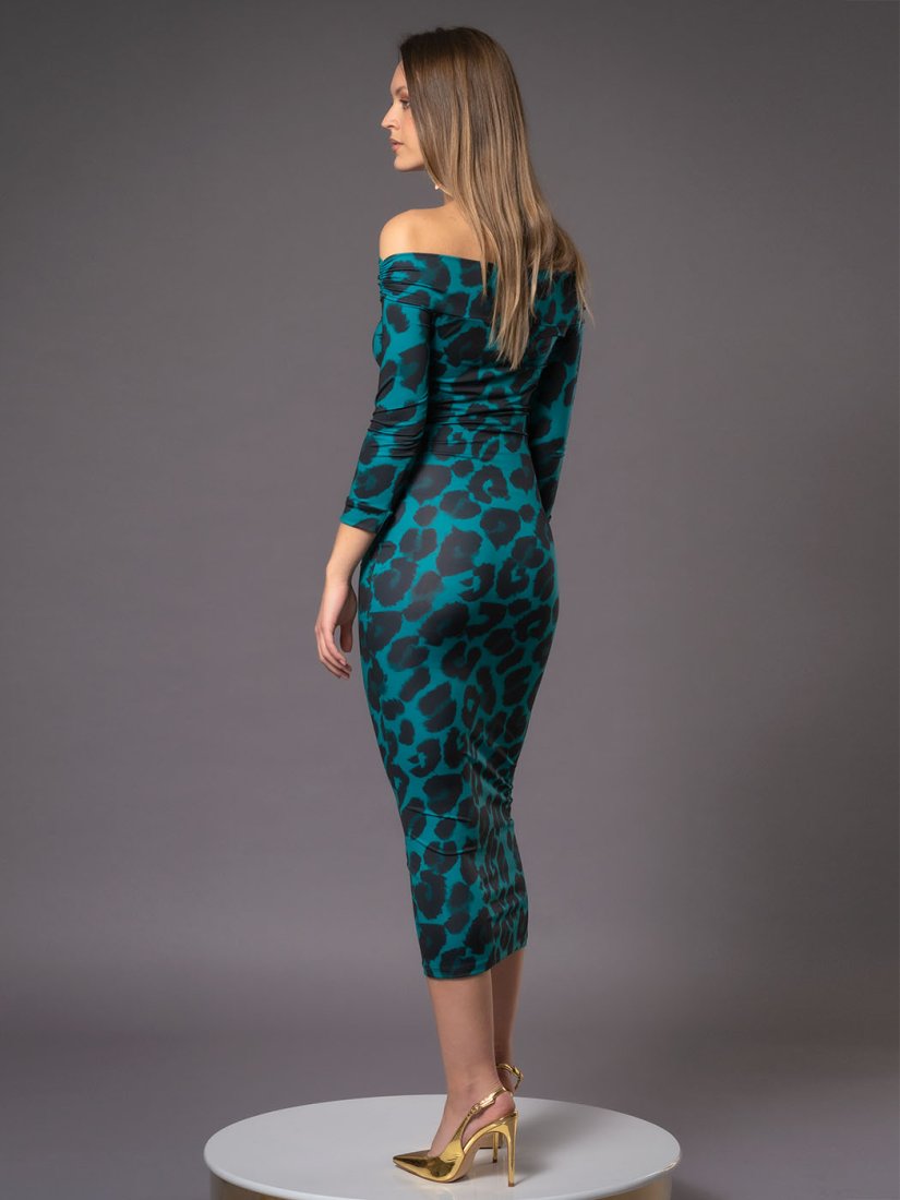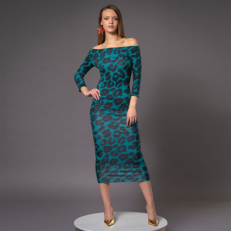 Deseń "Deep Tropic" - autorski druk. Nowoczesna interpretacja klasycznej panterki w odcieniach turkusu i głębokiej czerni.