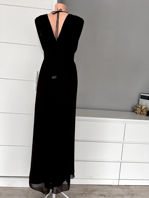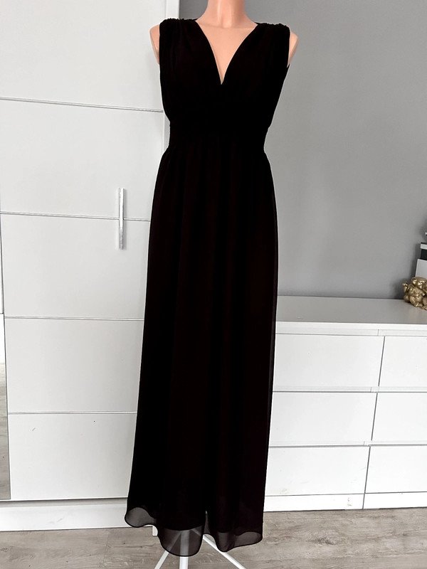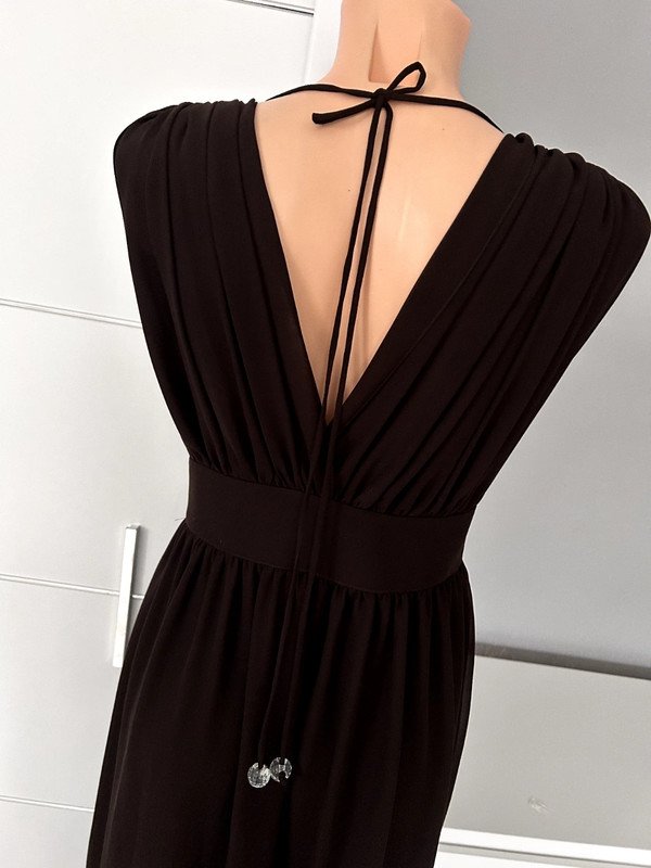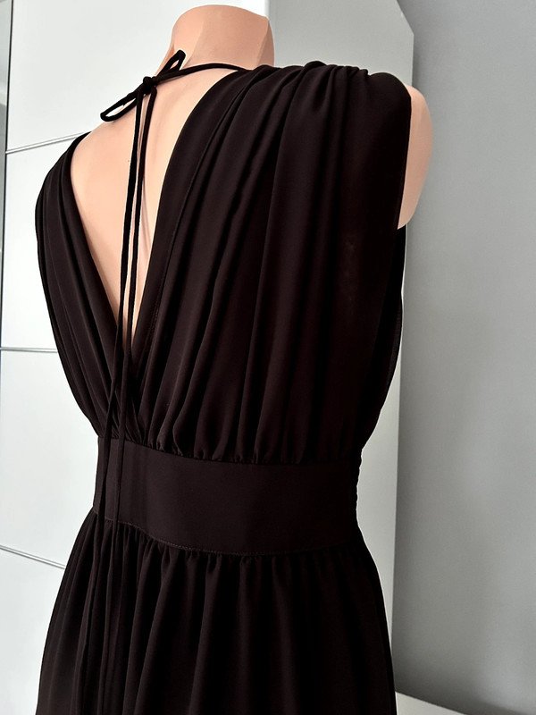 Suknia maxi firmy Johan Hultman. Idealna na bal, wesele, studniówkę i inne imprezy. Zwiewna, na podszewce, w pasie gumka, dzięki temu pięknie podkreśla talię I jest wygodna. Na ramionach ściągana sznureczkami, które można zawiązać a przodu lub z tyłu, zakończonymi a'la kryształowymi kulkami. Piękny czekoladowy kolor. Polecam