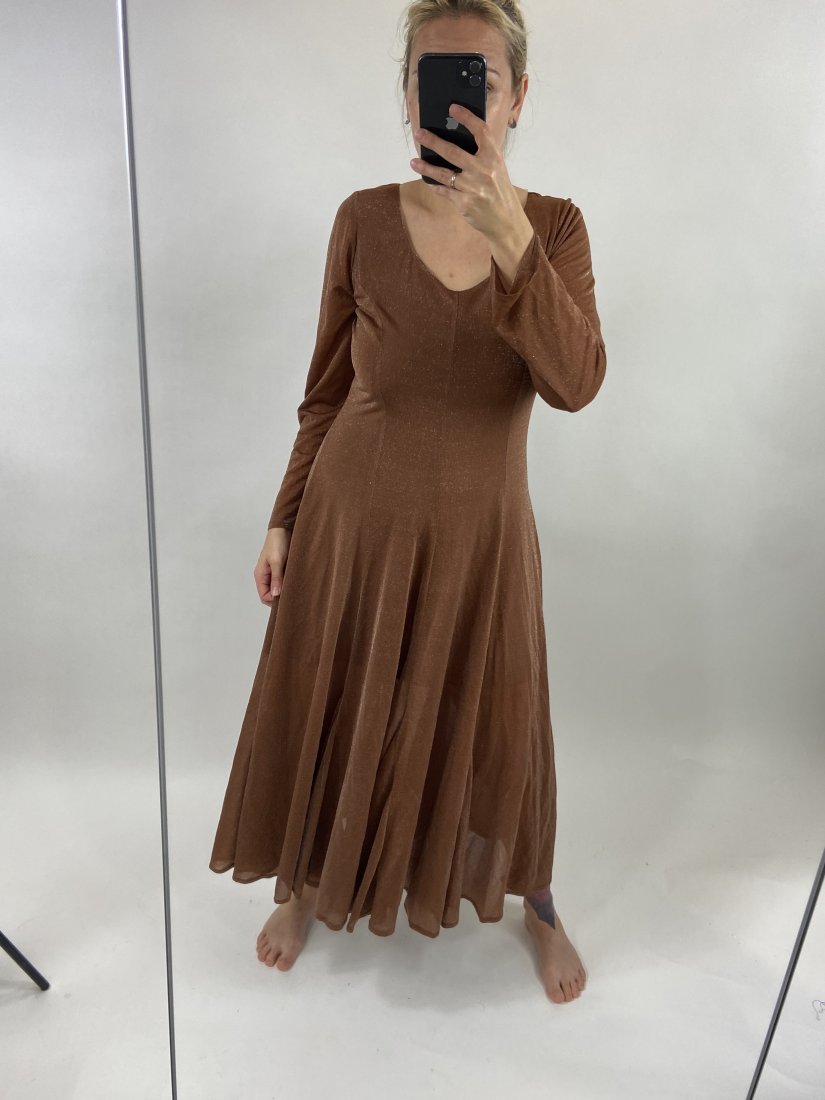 Przepiękna sukienka z lat 80tych. 100% rayon (sztuczny jedwab). Sukienka posiada miluśką podszewkę. Nie ma metki górnej, natomiast jest naniesiona metka z datowaniem - i tutaj jest to albo 1930 albo 1980 ... w każdym razie wiekowa.