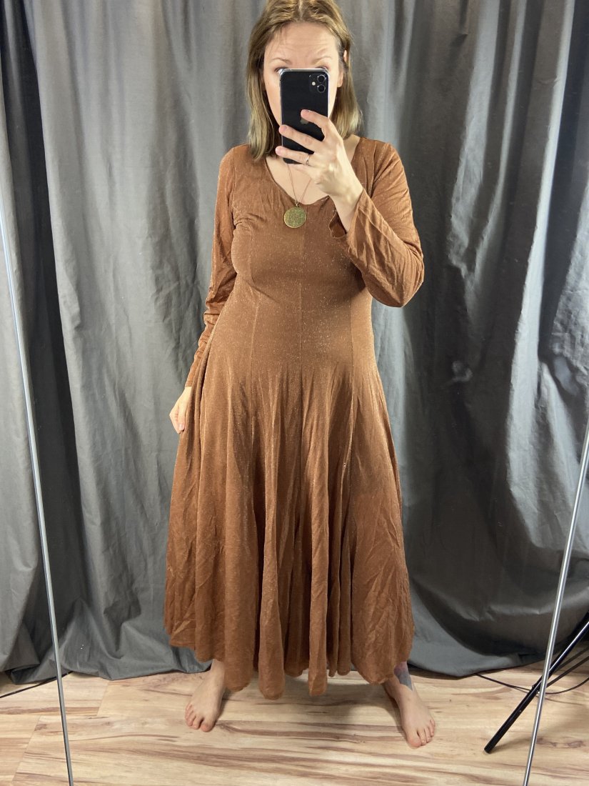 Przepiękna sukienka z lat 80tych. 100% rayon (sztuczny jedwab). Sukienka posiada miluśką podszewkę. Nie ma metki górnej, natomiast jest naniesiona metka z datowaniem - i tutaj jest to albo 1930 albo 1980 ... w każdym razie wiekowa.