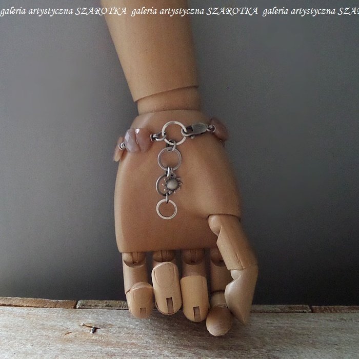 Tagi: #beżowa bransoletka, #kamień słoneczny, #półksiężyce, #srebro oksydowane 925