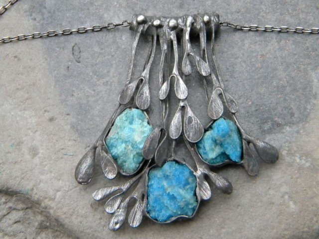 Naszyjnik z surowych apatytów w ocynowanej miedzi.
