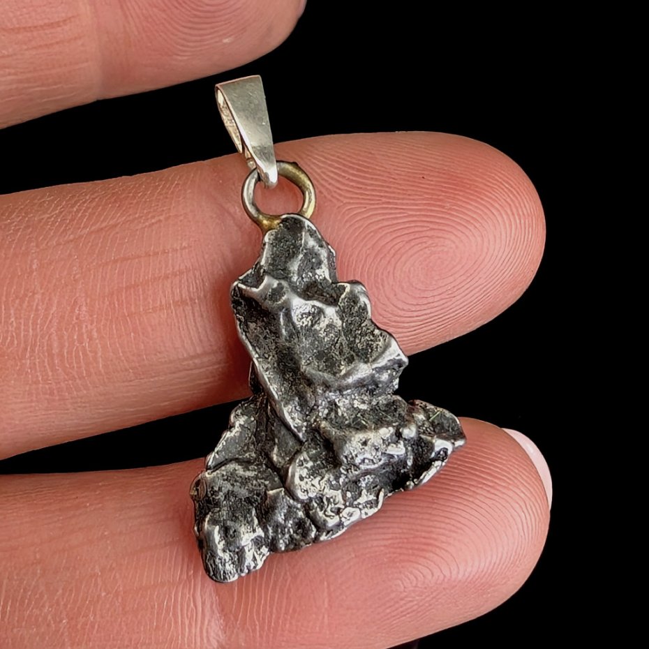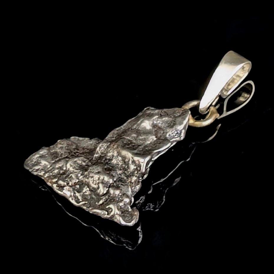 Wisior z meteorytem żelaznym Campo del Cielo, który znaleziono w 1576 roku w Argentynie. Krawatka srebro 925 Uniwersalny, dla niego lub dla niej. Wymiary 20 x 17 mm. Długość max 35 mm. Waga wisiora 4,3 g. Do meteorytu dołączona zostanie metryka z datą, miejscem spadku i wagą. Wisiorek zostanie zapakowany w ozdobne pudełeczko.
