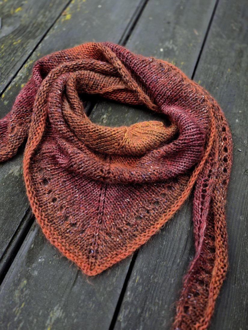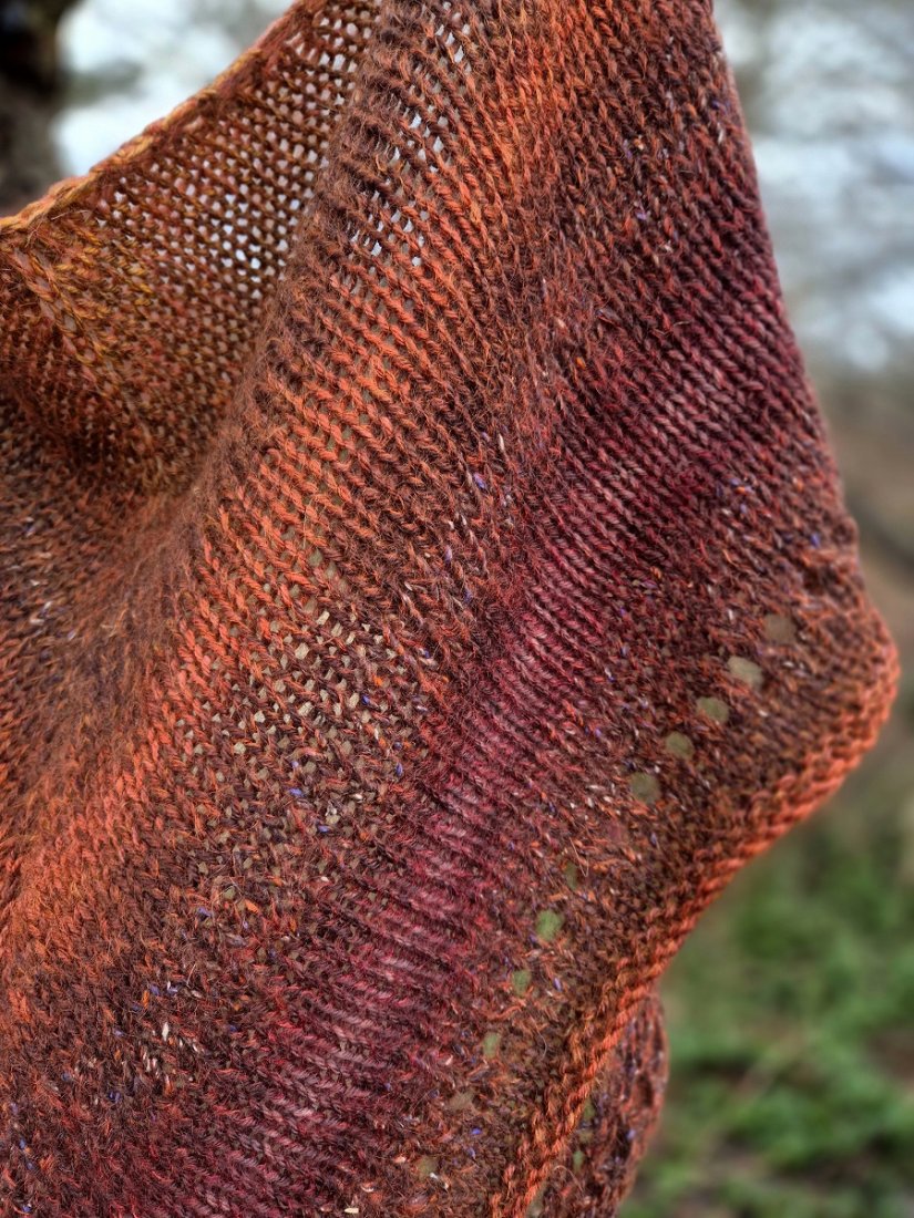 Miękka, puszysta i lejąca chusta, wykonana ręcznie na drutach z wysokiej jakości włóczek- do pięknie wybarwionej tweedowej dodałam miękkie merino.