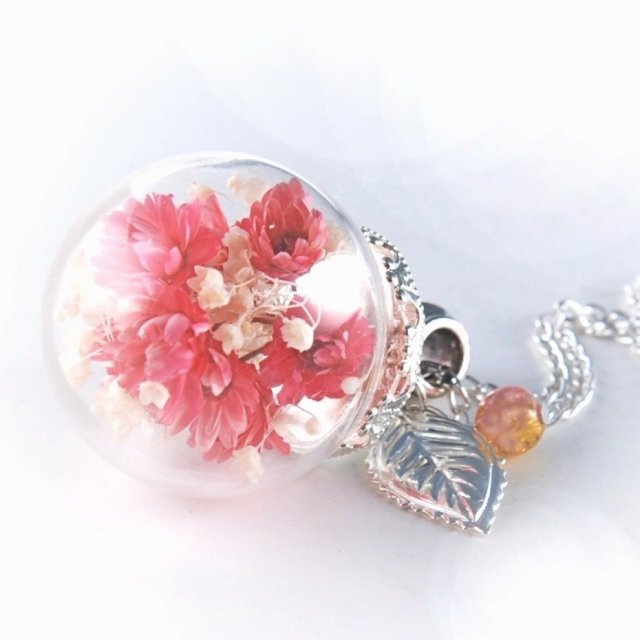 W środku drobne,różowe suszone kwiatki, które nie stracą koloru. Kwiatki są prawdziwe, nie sztuczne.