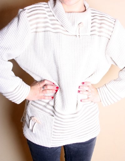 Kremowy sweterek, moze byc jako oversize.,osoba na zdj.nosi rozm.S