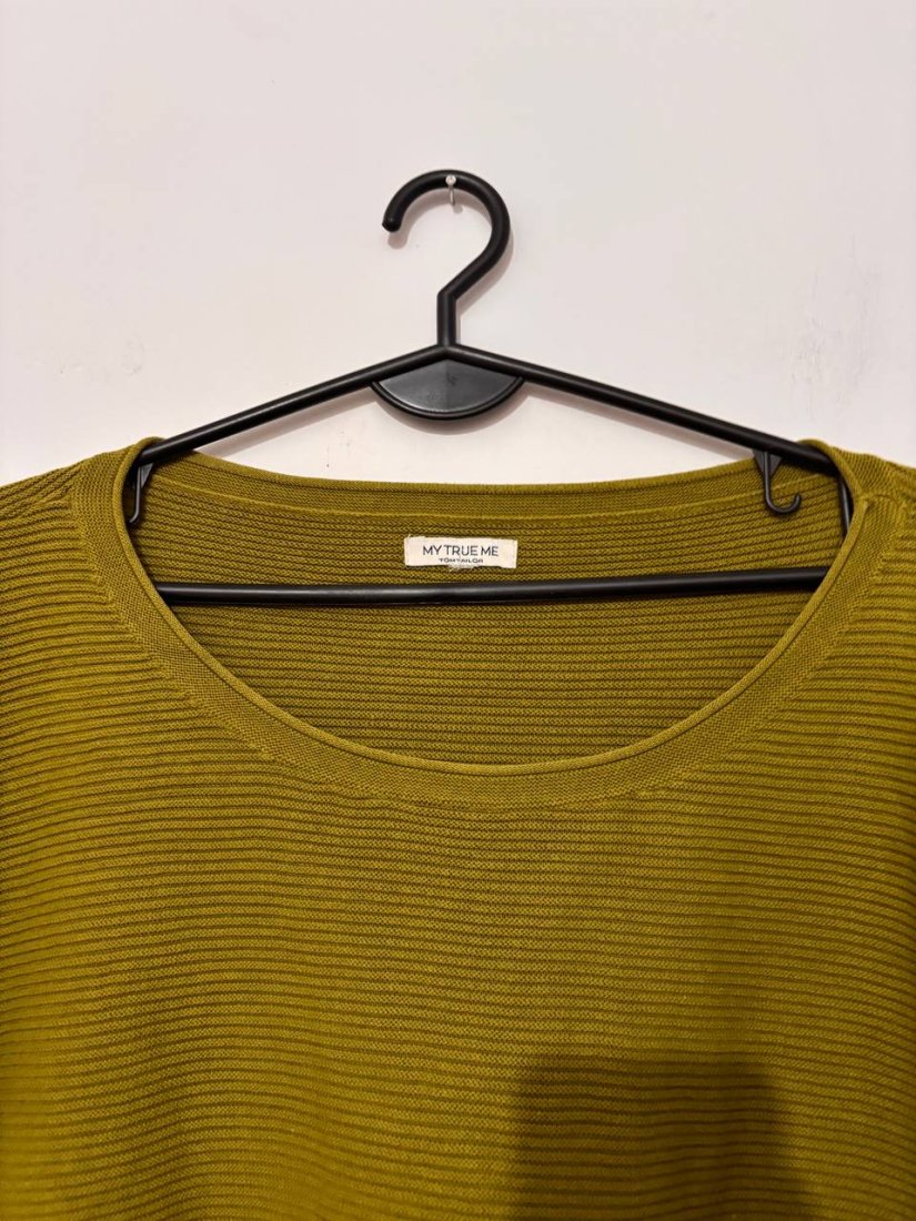 Sweter bawełniany My True Me by Tom Tailor, oliwkowy, lekkiej dzianiny.