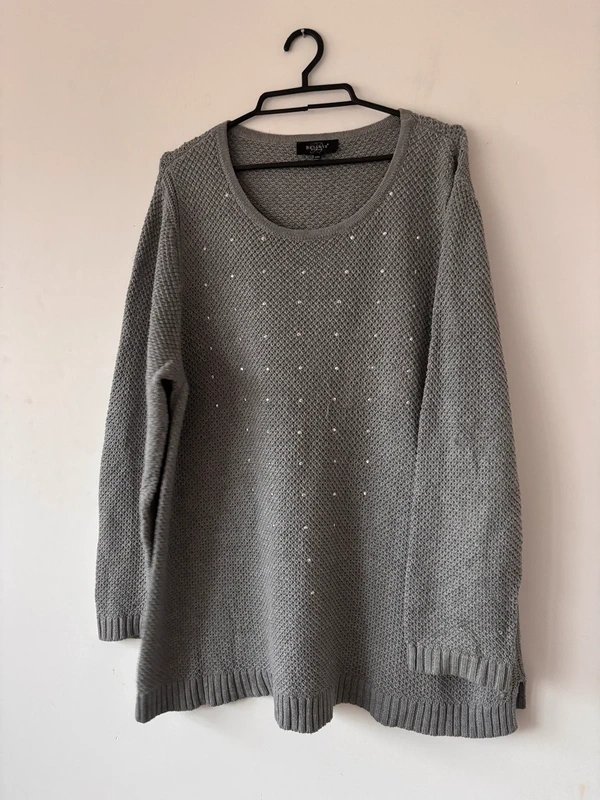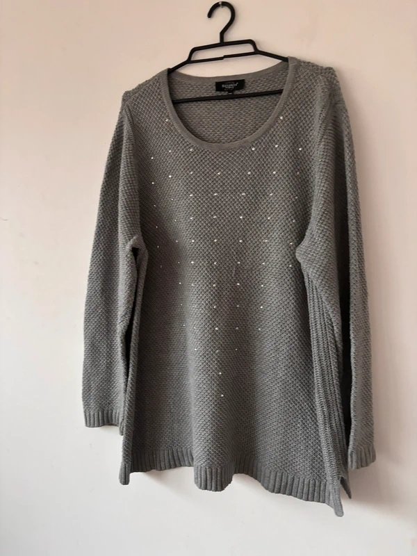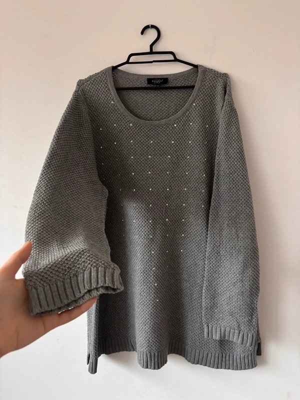 sweter szary, sweter xxl, sweter perełki, sweter damski, sweter bexleys, gruby sweter, ciepły sweter, sweter na zimę, luźny sweter, oversize sweter, elegancki sweter, sweter z ozdobami, cosy knit, knitwear, grey sweater, pearl sweater, winter sweater, warm sweater, loose fit sweater, oversized sweater, women’s sweater, chic sweater, textured knit, comfy sweater, casual sweater, everyday wear, soft knit, stylish sweater