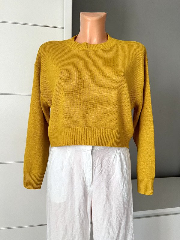 Sweter firmy H&M Divided, rozmiar XS 34, kolor musztardowy. Krótki oversizowy krój. Polecam
