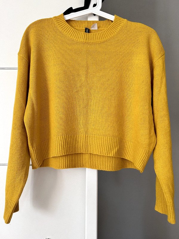 Sweter firmy H&M Divided, rozmiar XS 34, kolor musztardowy. Krótki oversizowy krój. Polecam