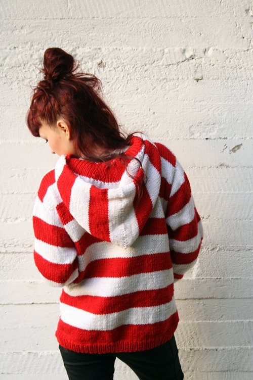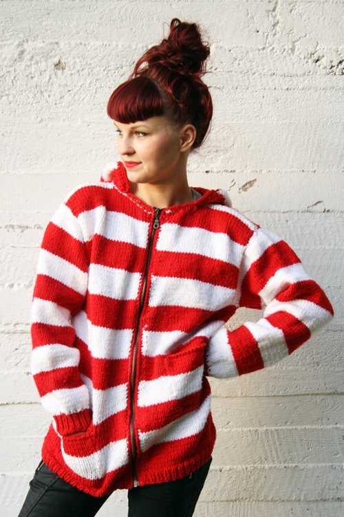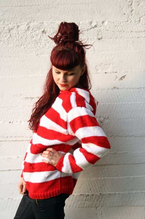 Czerwono-biały sweterek 100% ręczna robota. ,kolory ładniejsze jak na zdjeciu,rozmiar S/M.,osoba na zdj.nosi rozm.S