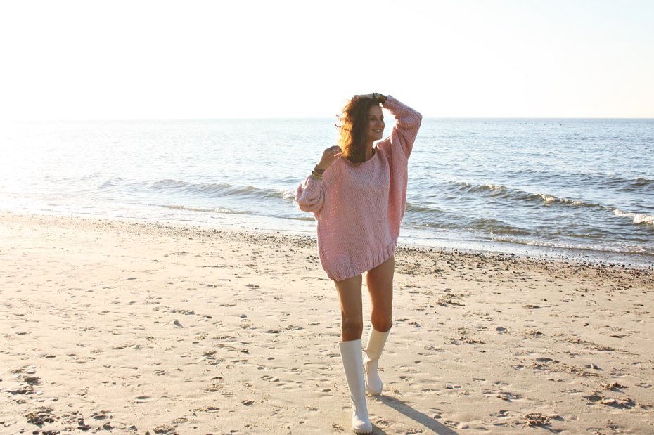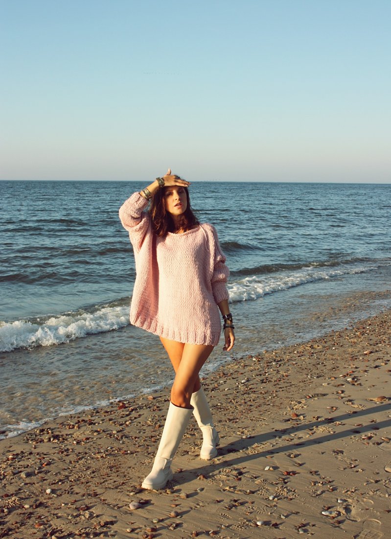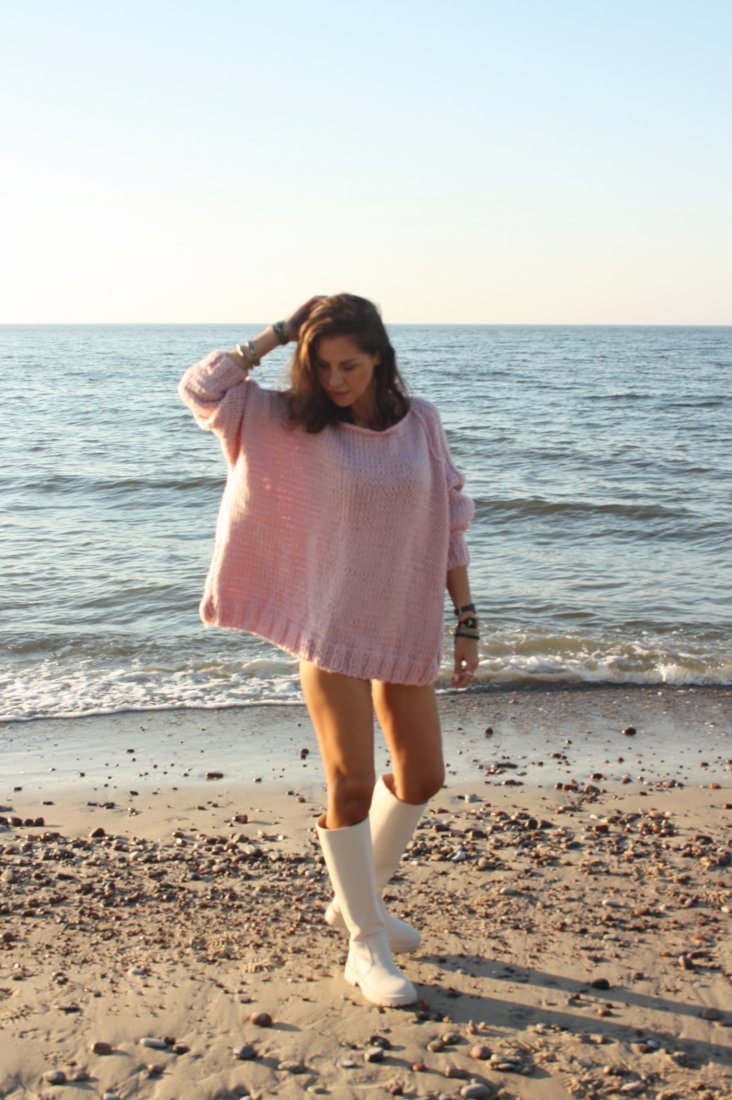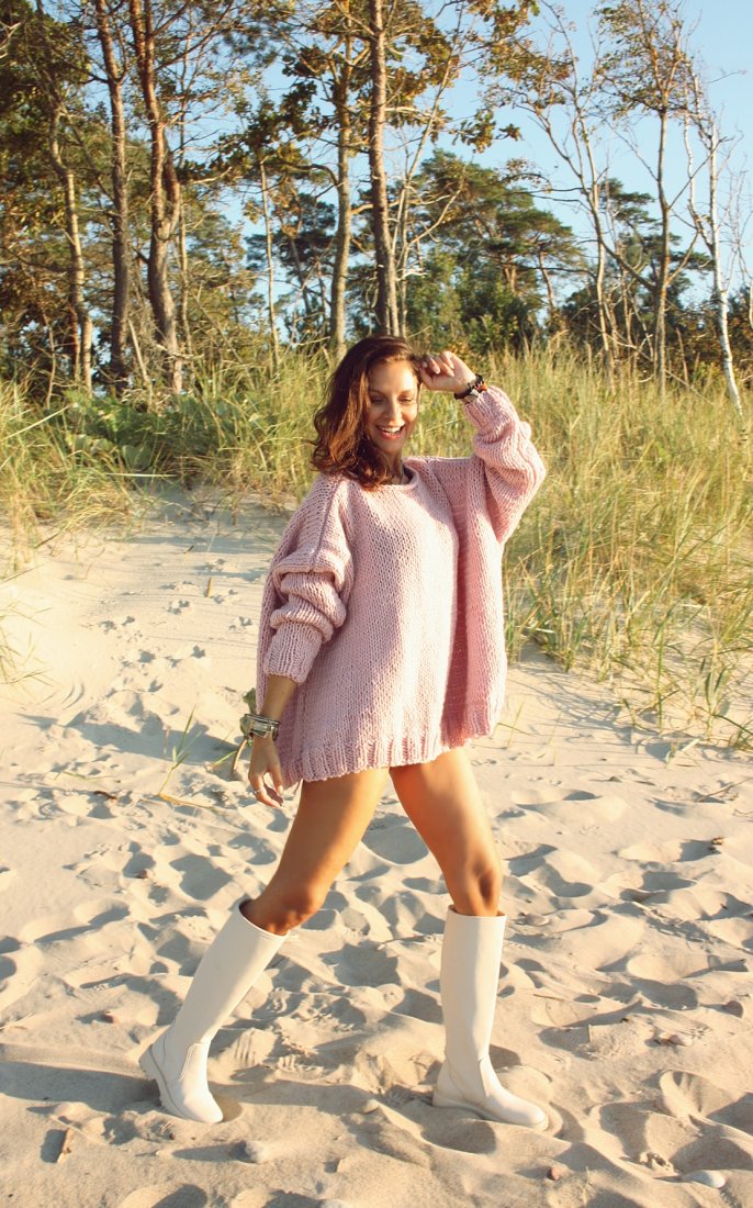 Ręcznie wykonany sweter, kolor pudrowy róż.