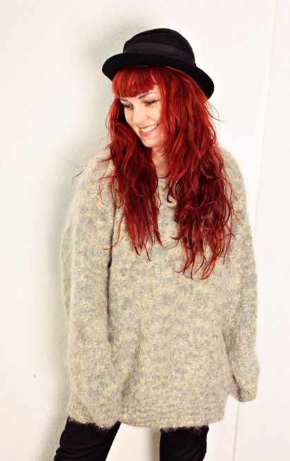 Duży,obszerny,włochaty sweter,moher,akryl,poliester. oversized ,rozm.M,osoba na zdj.nosi rozm.S/wzrost 158cm