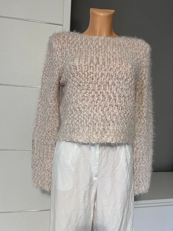 Sweter firmy New Look, nie posiada metki z rozmiarem ale moim zdaniem to rozmiar S. W kolorze melanż brudny róż i krem. Jest milutki, mięciutki i i ciepły. Polecam