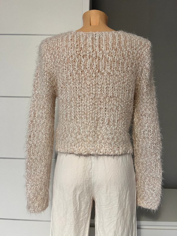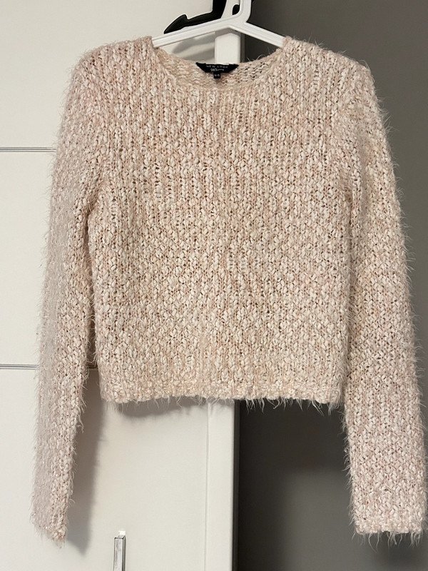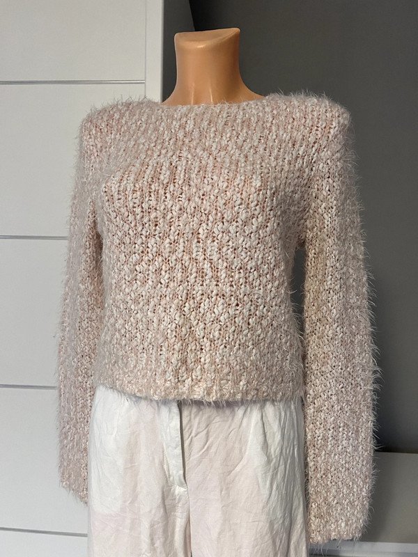 Sweter firmy New Look, nie posiada metki z rozmiarem ale moim zdaniem to rozmiar S. W kolorze melanż brudny róż i krem. Jest milutki, mięciutki i i ciepły. Polecam