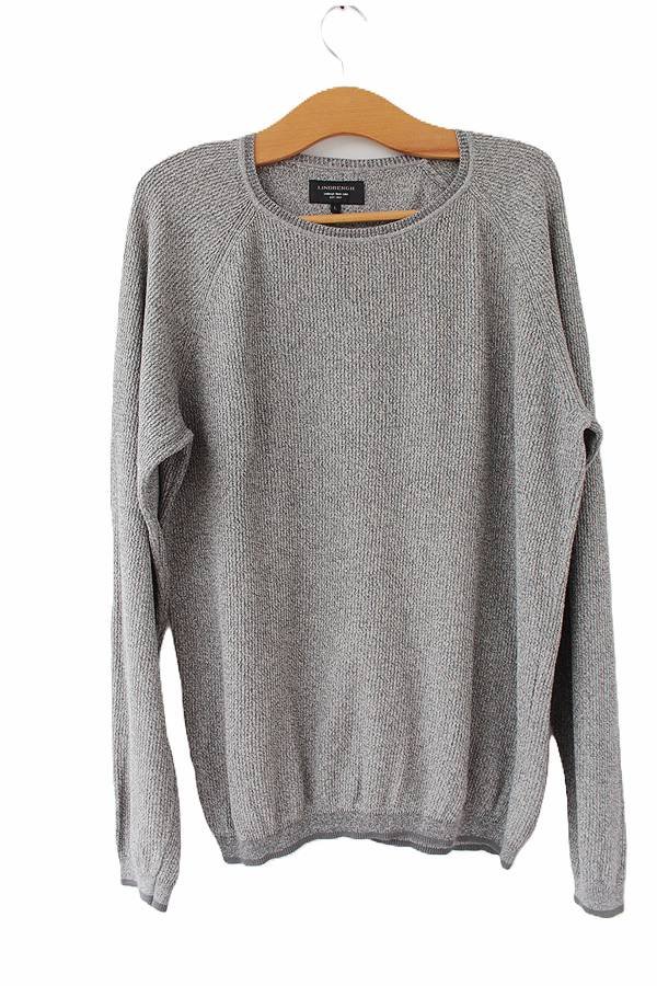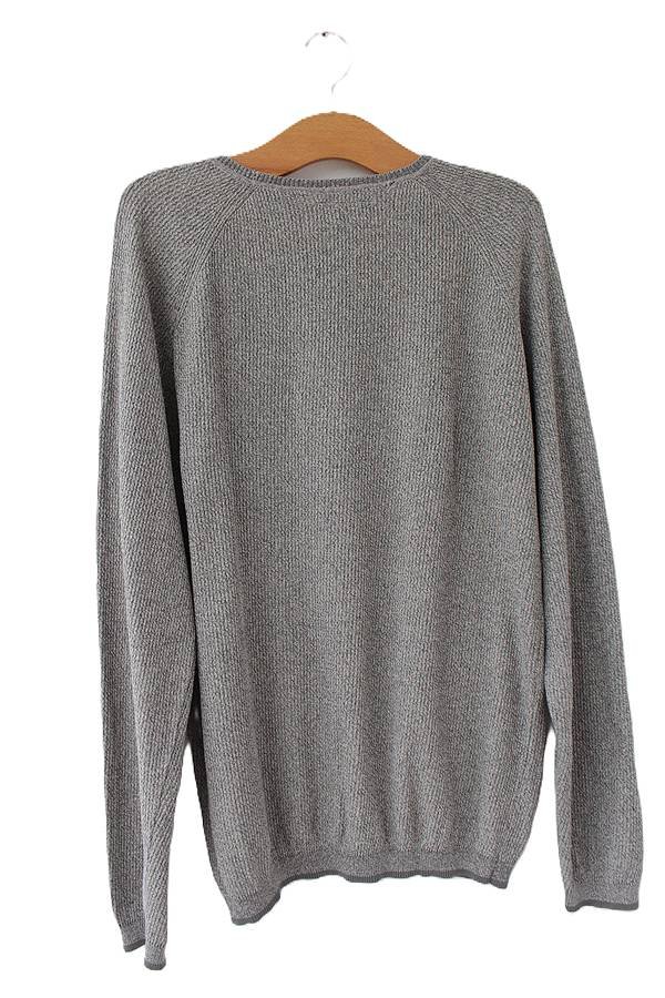 Sweter w melanżowej kolorystyce wykonany z bawełny. Ma klasyczny fason - może być damski albo męski.