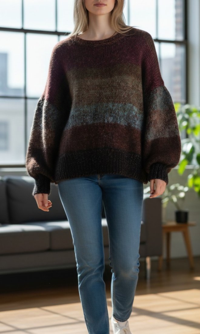 Odkryj wyjątkowy komfort i elegancję z naszym ręcznie robionym swetrem, wykonanym z ekskluzywnej mieszanki najwyższej jakości włóczek: merino, moheru i jedwabiu.