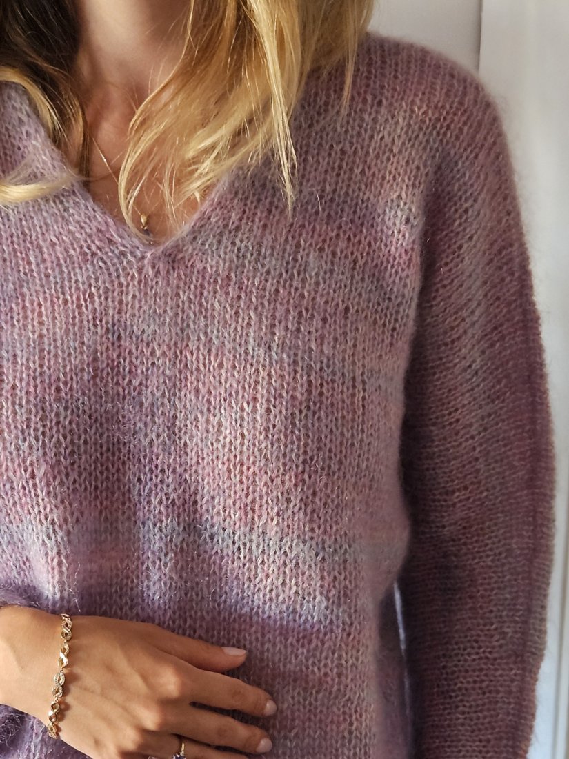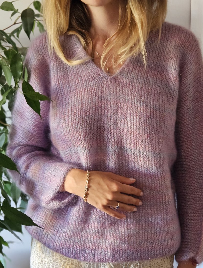 Sweter Print wykonany jest z wysokiej jakości włóczki będącej połączeniem moheru I jedwabiu i merino.