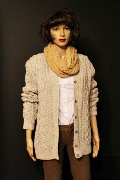 Ciepły sweter vintage robiony ręcznie na drutach na nadchodzącą aurę. Kolor odcień kości słoniowej - delikatny popiel. Ciekawy gruby warkocz. Jest wyjątkowo urokliwy.