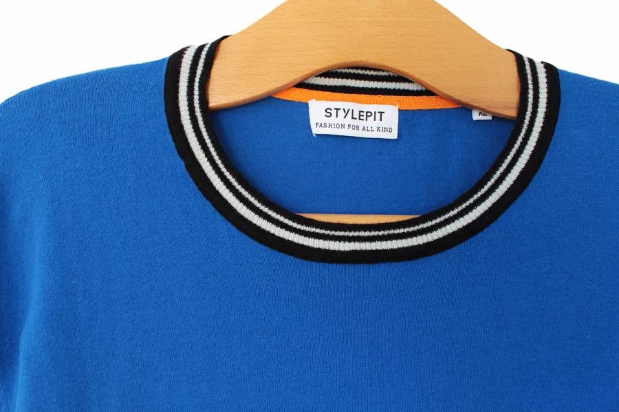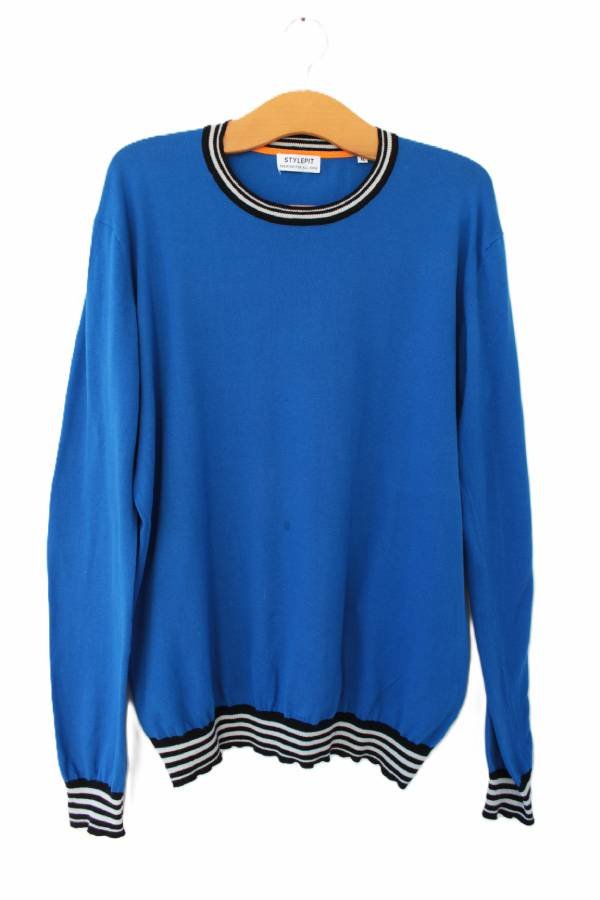 Sweter vintage z bawełny w nasyconym niebieskim odcieniu marki STYLEPIT. Ze względu na klasyczny krój produkt unisex.